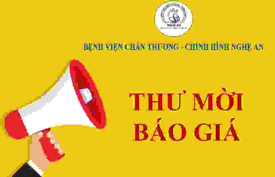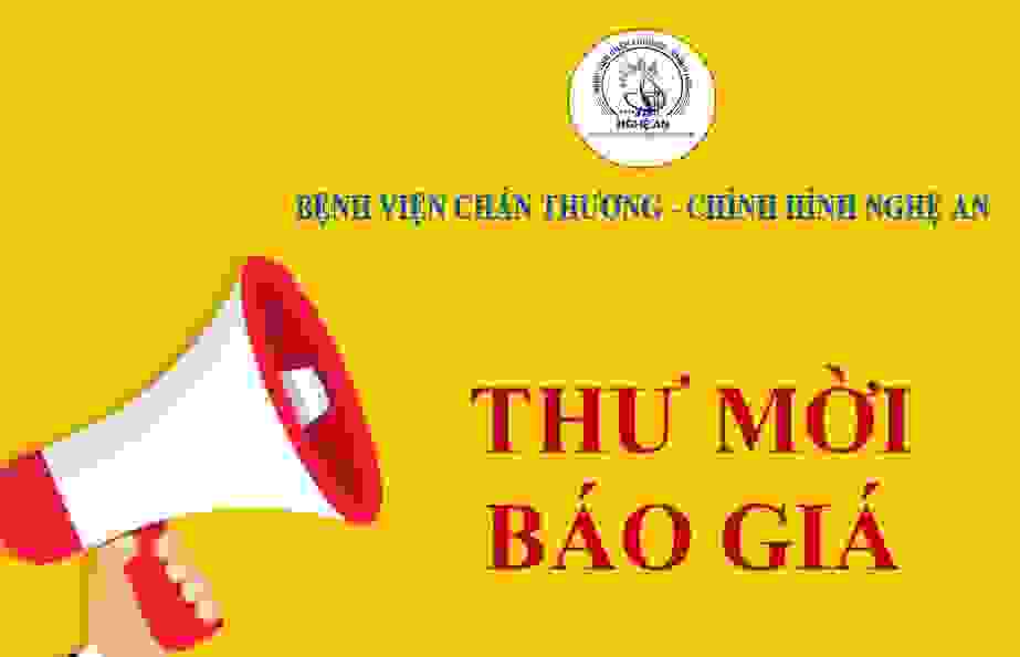 Bệnh viện Chấn thương - Chỉnh hình Nghệ An kính gửi thư mời chào giá cung cấp dịch vụ tư vấn thẩm định HSMT cho các gói thầu mua sắm vật tư, hóa chất của Bệnh viện như sau: